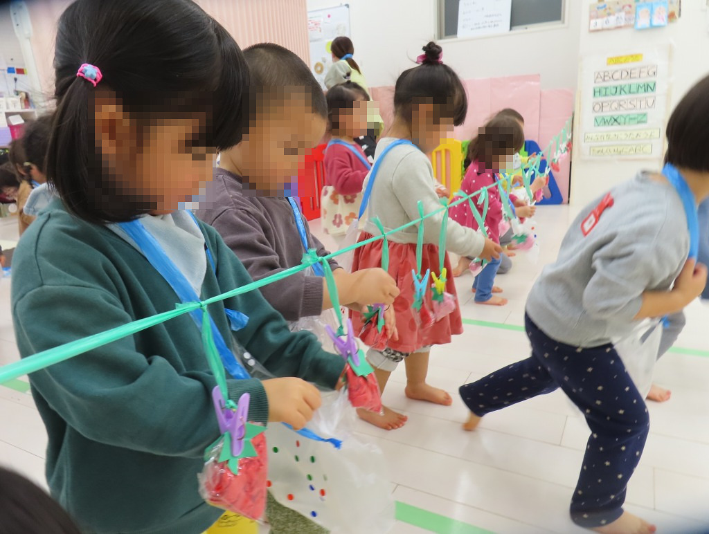 今週の数字遊びでは、いちご狩りごっこを楽しみました♪