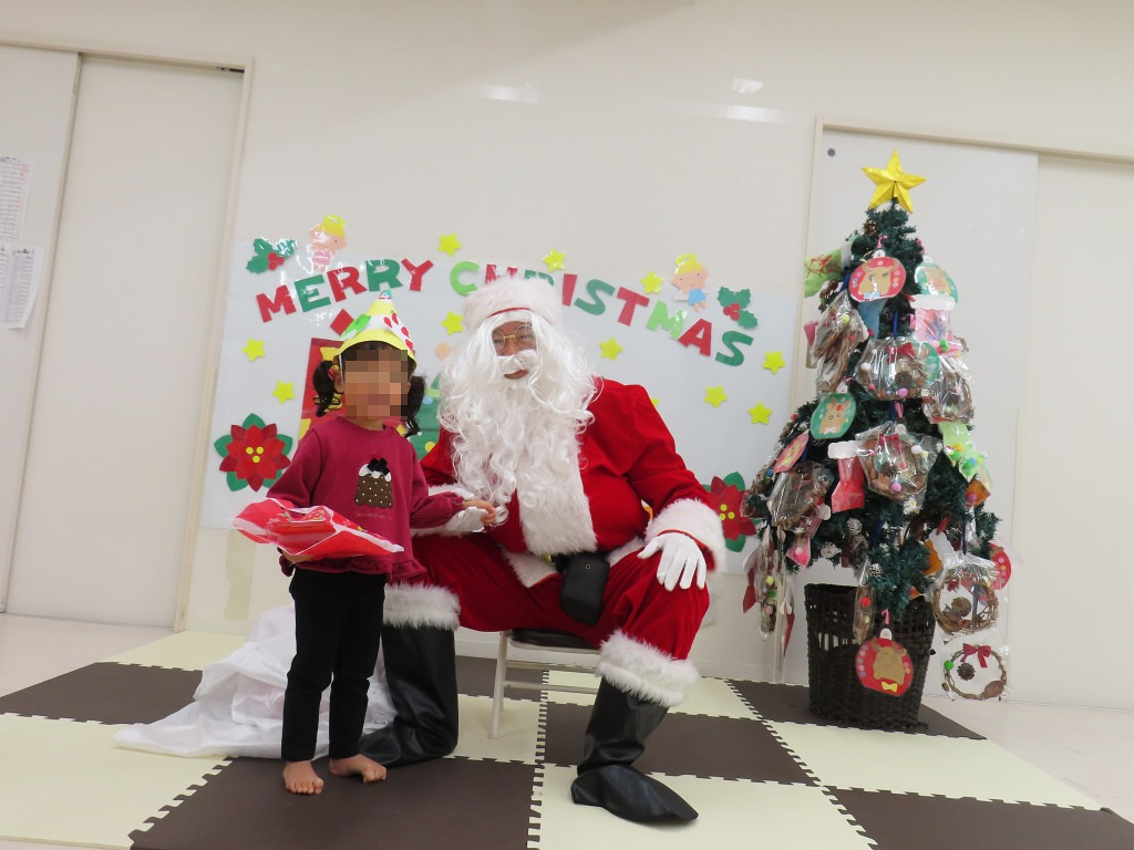 始めてみるサンタさんにびっくりしたり、満面の笑顔を見せたり、大興奮の子どもたちでした♪