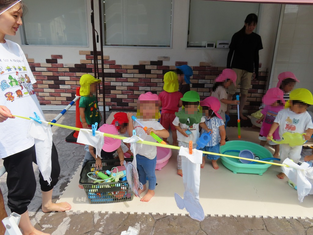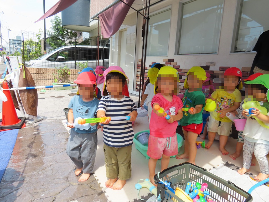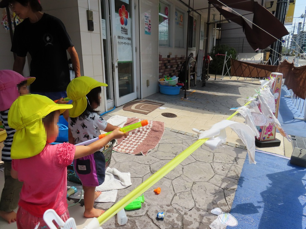 水鉄砲の扱いにも慣れて、普段からねらいを定めて当てるのを楽しむお友達♪