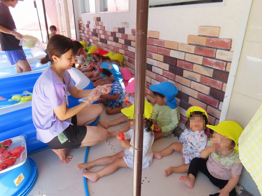 外で食べるスイカは甘くて冷たくてとっても美味しかったようで、お代わりもたくさん出ていました♪