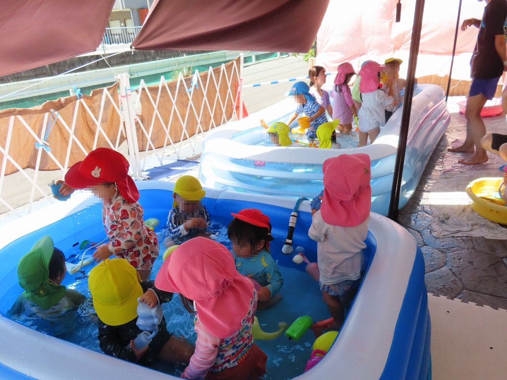最後は手を洗って、プールへザブーン!