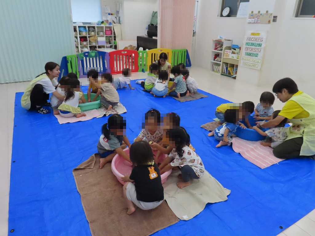 たらいの中で、両手を使ってごしごしごし♪手の使い方がとっても上手でした!