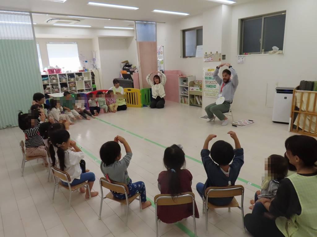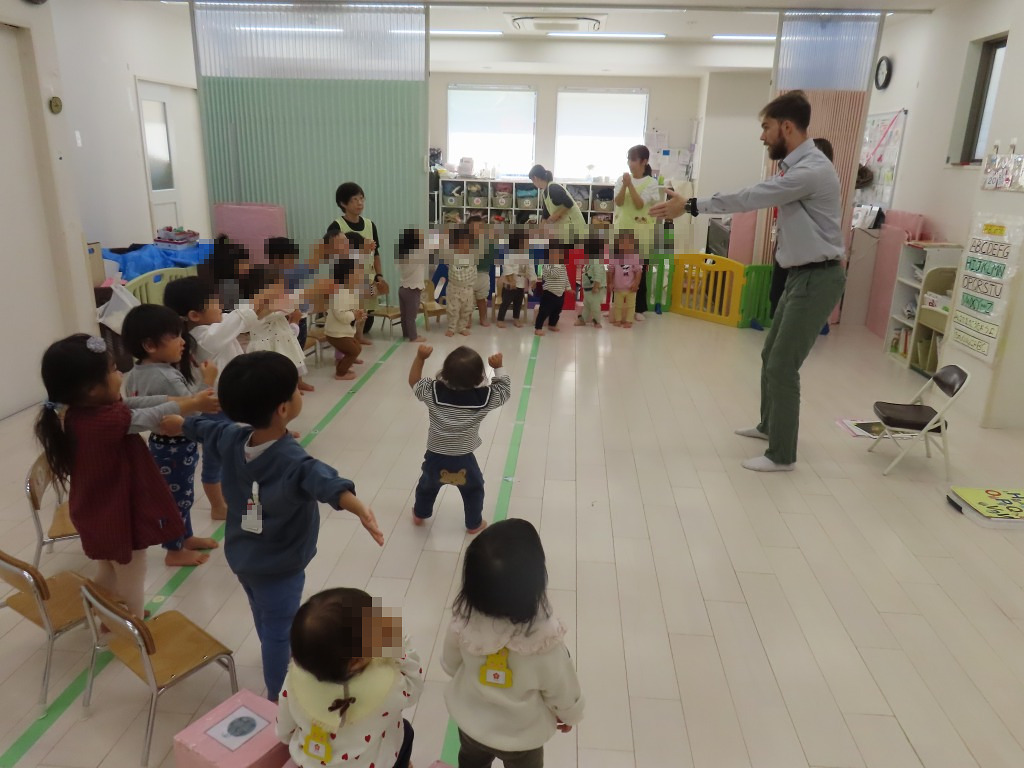 身体を使った模倣あそびや、カードあそびや大型絵本など大いに楽しんでいます!