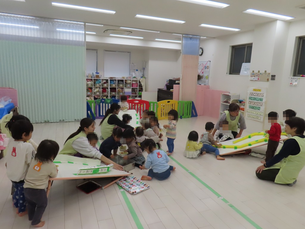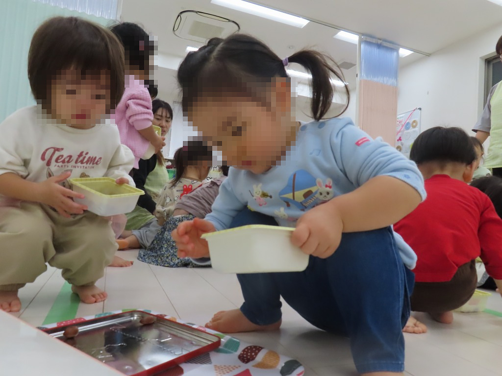 豪快に容器をひっくり返して転がしたり、一つずつ摘まんで転がしたり、転がってきたどんぐりを拾い集めるのを楽しんだり♪