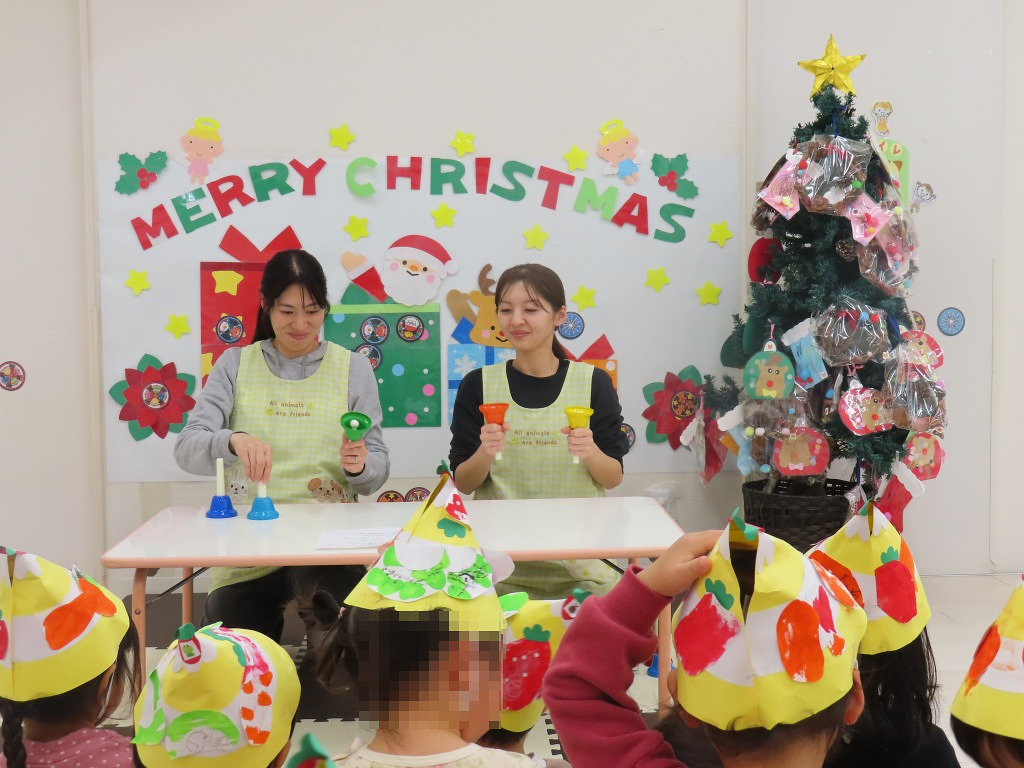 まずはピアノとハンドベルでの演奏”We wish you a merry Christmas"”ジングルベル”を聞きクリスマスムードいっぱいに♪