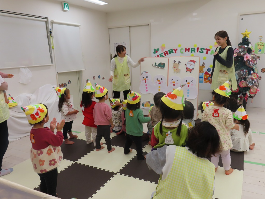 「雪だるまからぴょこんと出ている帽子はだあれ♪」「サンタさん♪」
