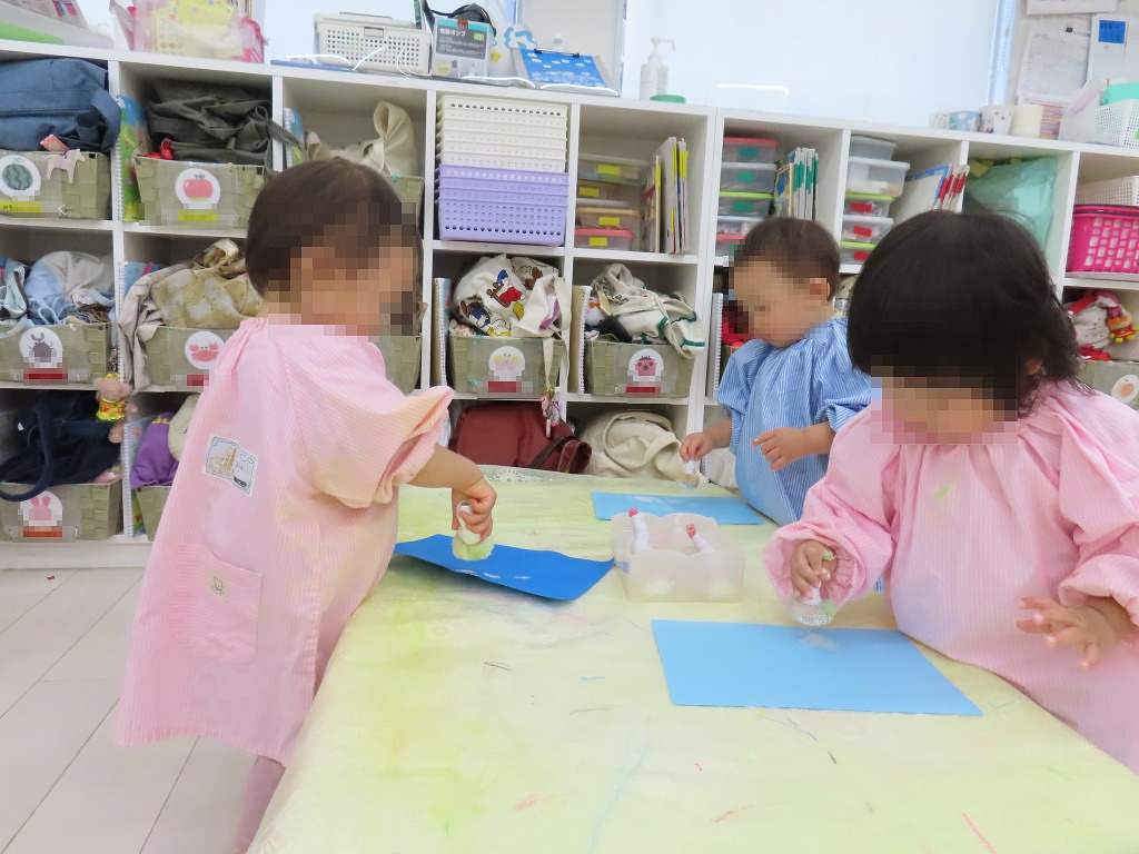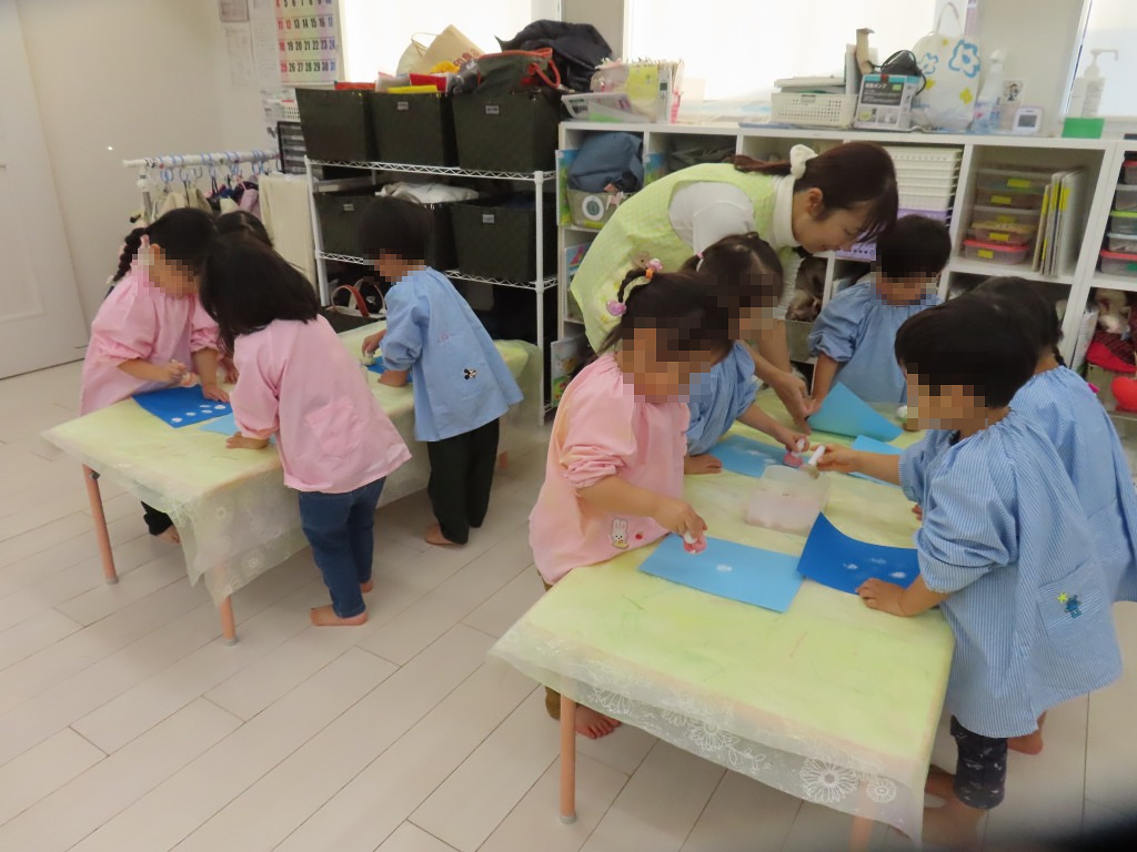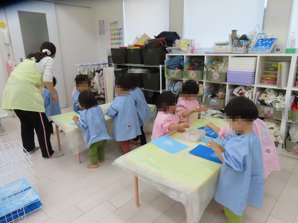 ウェリナ保育園のブログ たんぽで雪を表現しよう♪