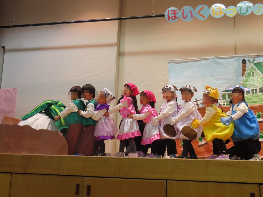 プログラム4番は2歳児赤組さんによる劇あそび「おおきなかぶ」♪
