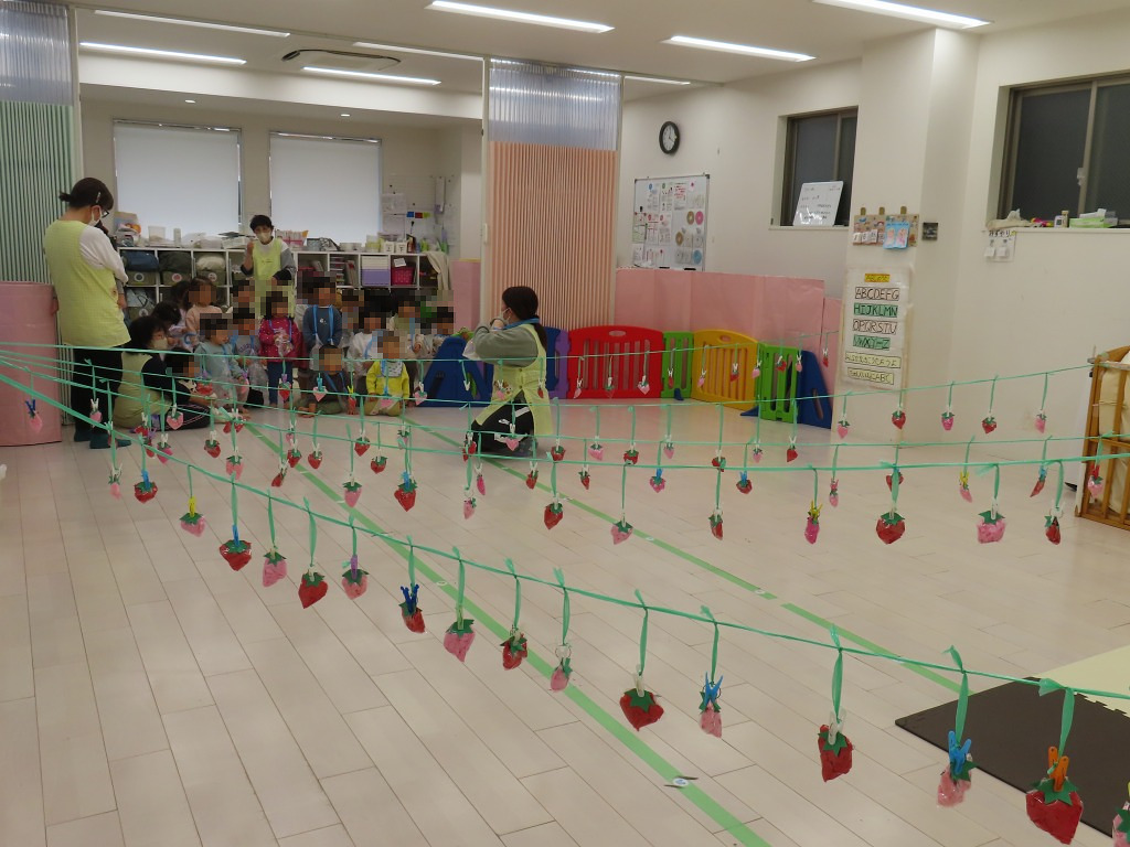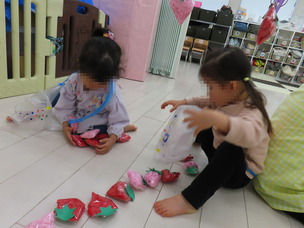 今週の数字遊びでは、いちご狩りごっこを楽しみました♪