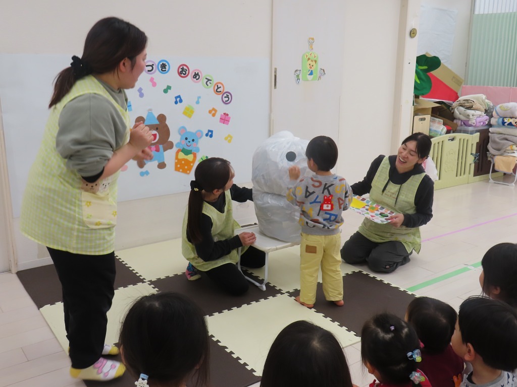 みんなからのお歌のプレゼントの後は、保育士による楽しい出し物の時間です。